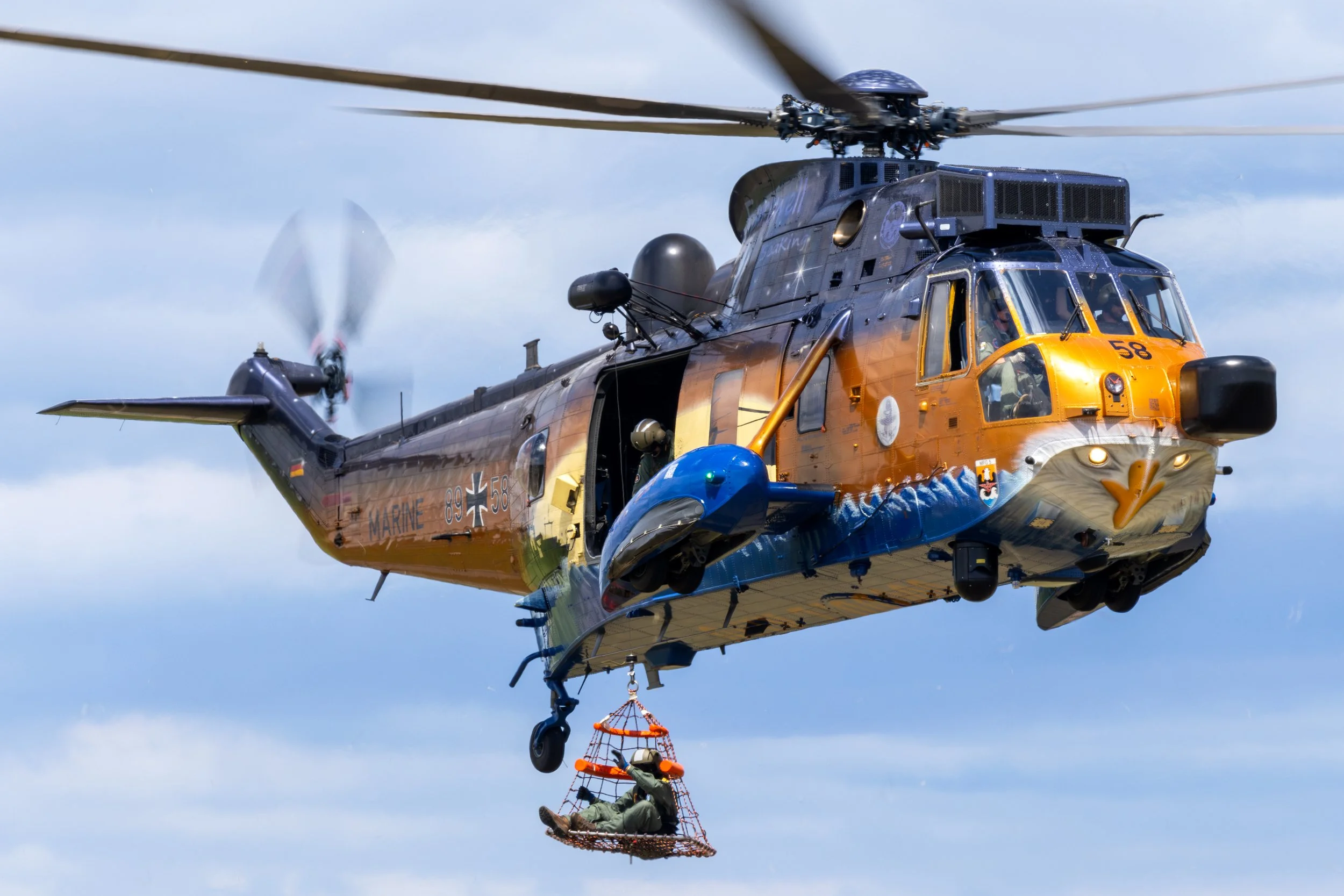Given the Franco‑German EC665 connection, it was no surprise that German military participation was the strongest of any foreign nation. The German Navy delivered the standout moment of the flying display with an unexpected Sea King Mk41 demo. Initially listed only for static display, the special‑schemed ‘Goodbye King’ airframe was towed out ahead of its 12‑minute routine. The display centred on a winching demonstration — the type’s bread and butter — interspersed with a few brisk passes, and concluded with a bow to the crowd in one of the Sea King’s final appearances in German service.