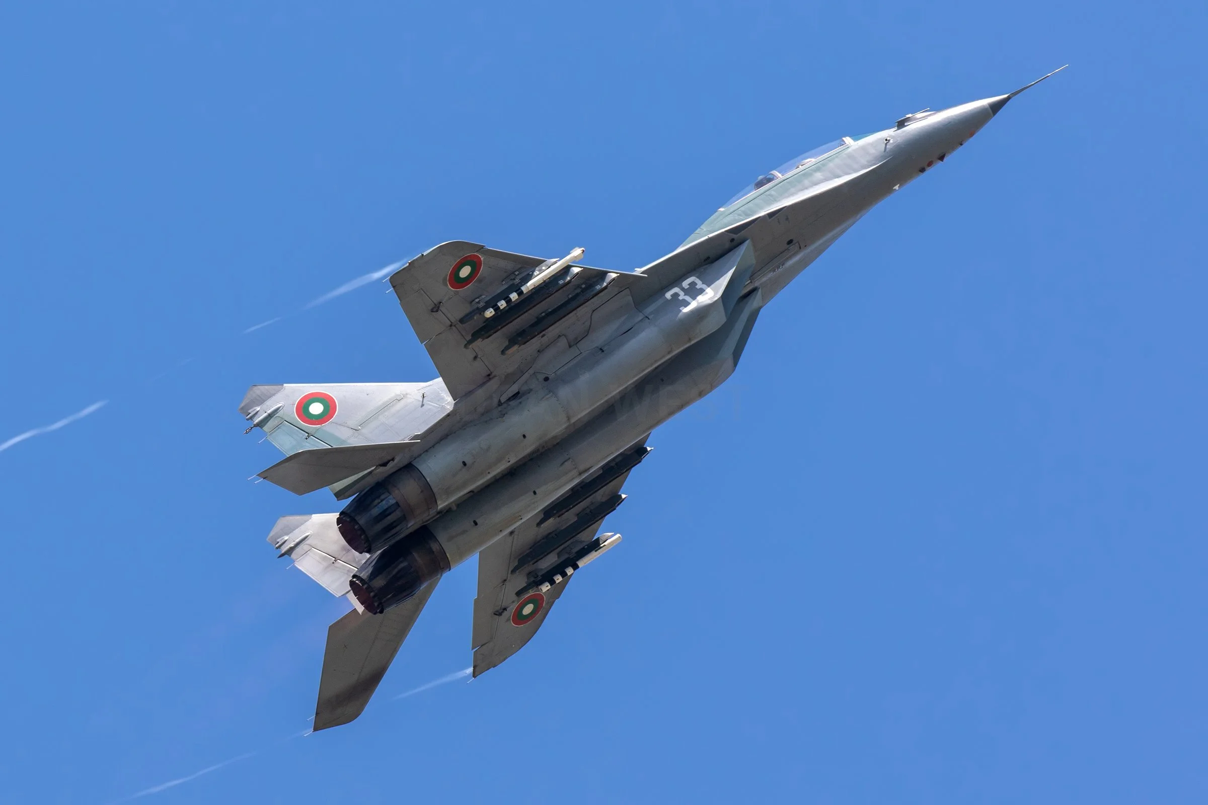 Graf Ignatievo, Bulgaria’s fast‑jet base, opened its doors on 25 June 2022 to give the public a rare look at the assets of the Bulgarian Air Force in action. As the home of the MiG‑29 fleet, it was no surprise that the Fulcrum dominated the flying programme on that hot summer day. The show opened with a dogfight between a pair of twin‑stick MiG‑29UBs, one of which returned an hour later for a solo display, while a wonderfully tenacious single‑seat MiG‑29A closed the event with another punchy routine.
