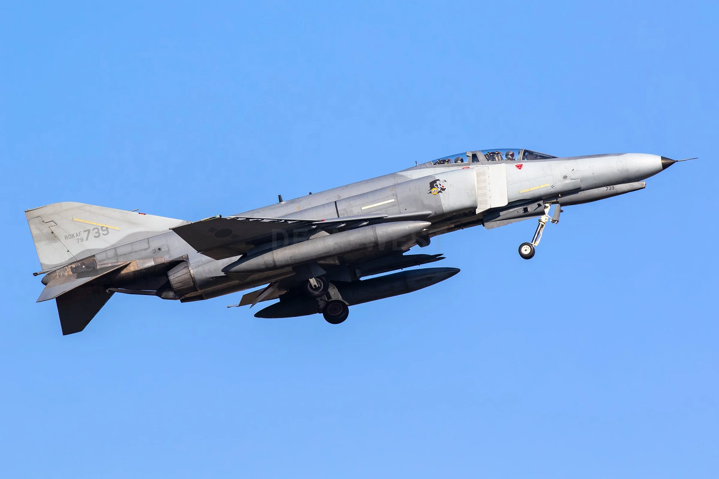 After a fantastic day at Seongnam, rumours began circulating among local spotters that the grounding had been lifted. We arrived at Suwon the next morning armed with patience — and needed every bit of it. No flying took place until late afternoon, but when the F‑5s finally roared into life it was a mix of single‑ and twin‑seat Tigers that could be photographed on the approach. Just as we were losing hope of any Phantom activity, a particularly loud departure to the north caught our attention. It was unmistakably not an F‑5. To our delight, it turned out to be a lone Phantom, which obligingly bashed the Suwon circuit after returning from its sortie.
