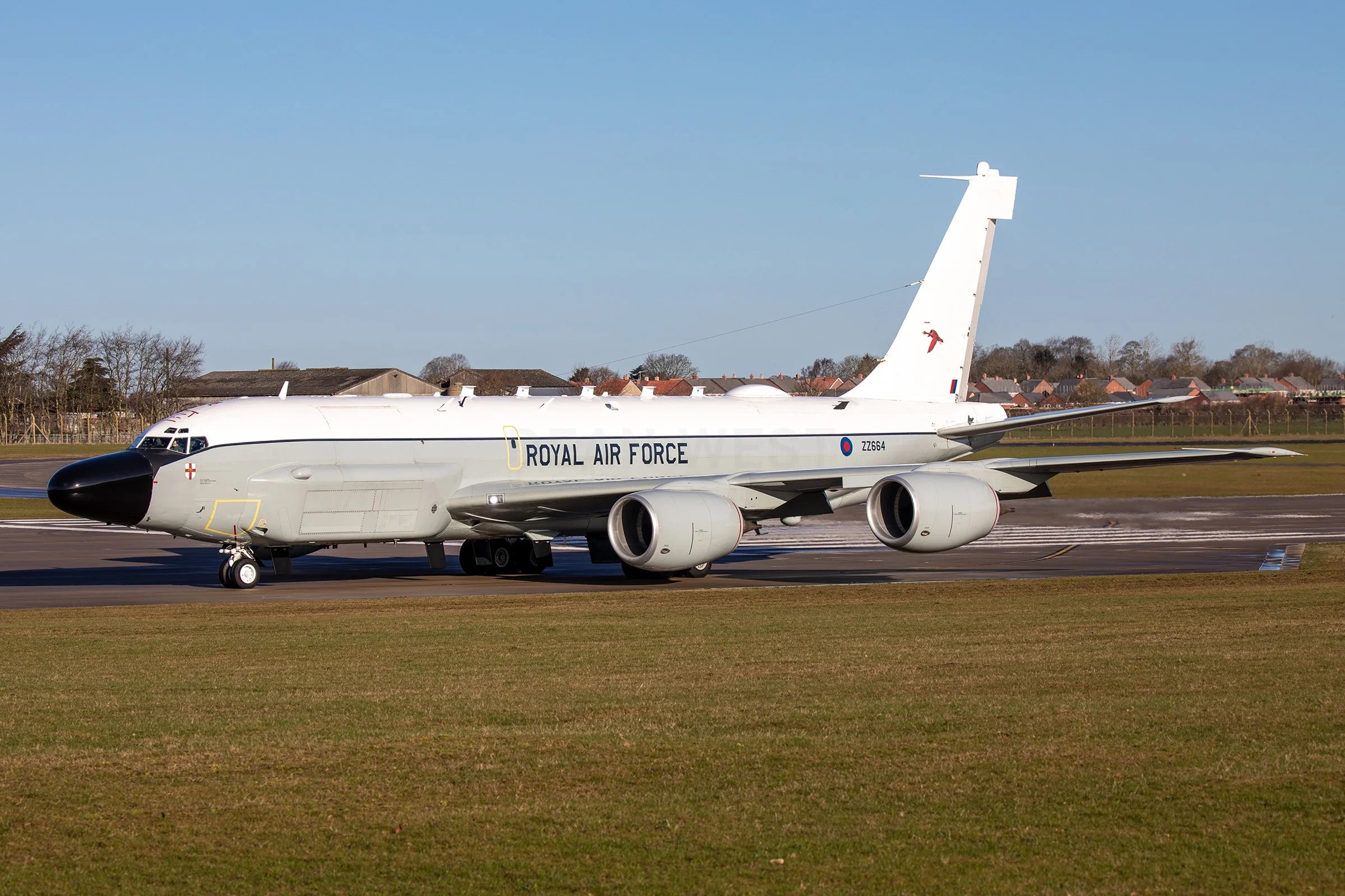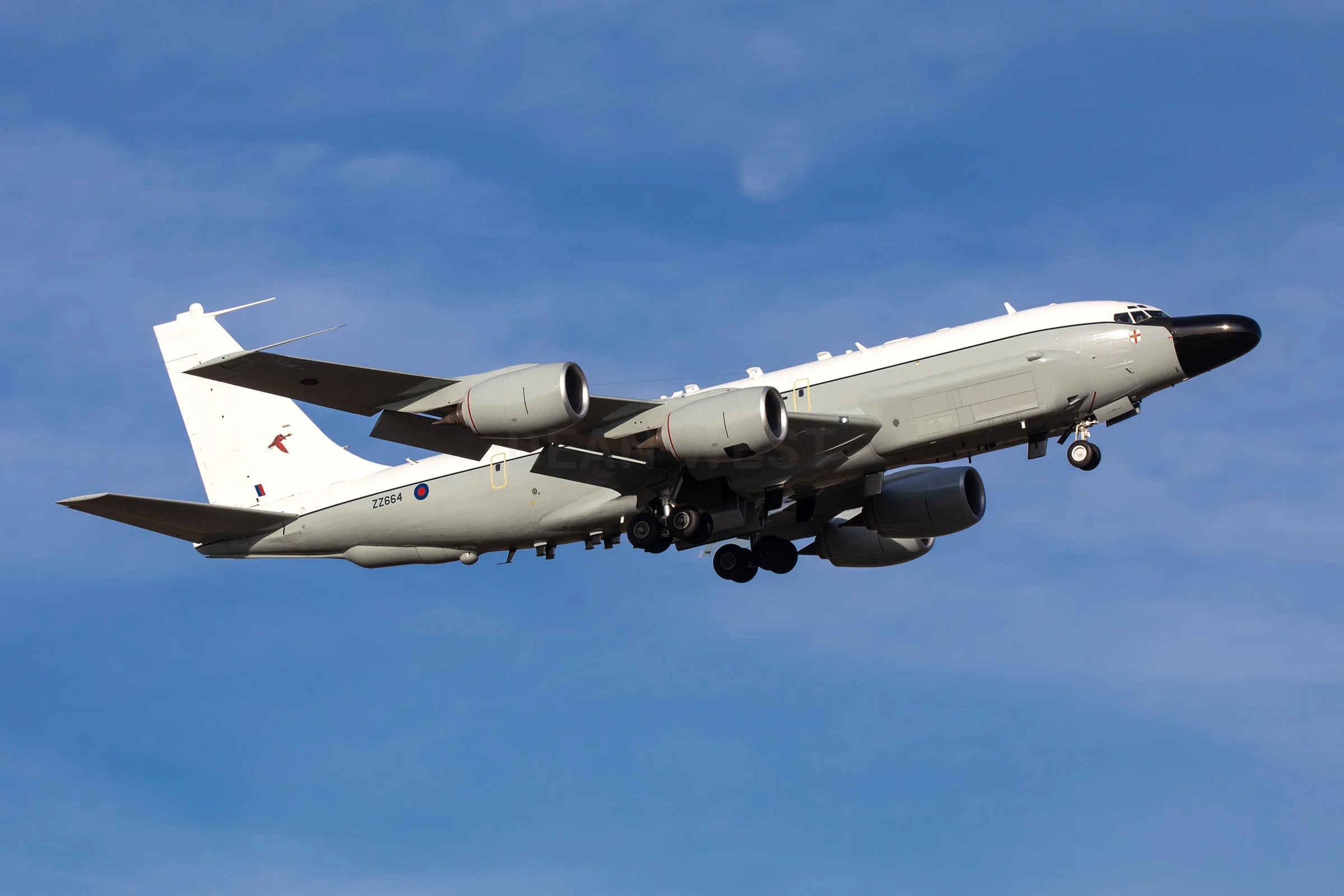 Under Project Airseeker, the RAF acquired three KC‑135Rs which were converted by L‑3 Communications in Texas to RC‑135W Rivwt Joint standard, replacing the Nimrod R1s that bowed out in 2011. The first aircraft, ZZ664, touched down at RAF Waddington on 12 November 2013, with ZZ665 and ZZ666 following in September 2015 and June 2017.